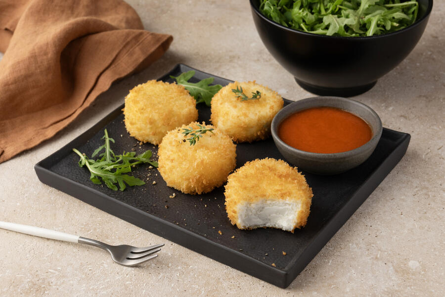 Panierter Ziegenkäse-Palet im Panko, Piquillos-Coulis